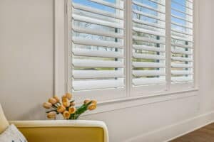 Superview plantation shutters keep the tilt rod hidden behind the louvers, creating a streamlined look while allowing precise control of light and privacy.
