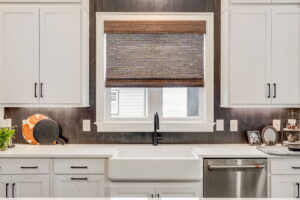 Light Filtering Roller Shades raised to expose windows in a Roswell, GA kitchen