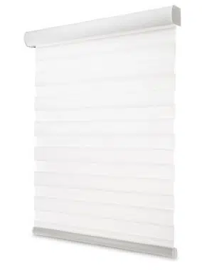 Graber® Layered Shades seamlessly transition from sheer to light-filtering as the two layers of fabric pass by one another. When in the open position, layered shades softly diffuse light. In the closed position, both layers of fabric bands overlap providing maximum privacy.