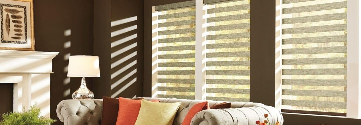Graber® Layered Shades seamlessly transition from sheer to light-filtering as the two layers of fabric pass by one another. When in the open position, layered shades softly diffuse light. In the closed position, both layers of fabric bands overlap providing maximum privacy.