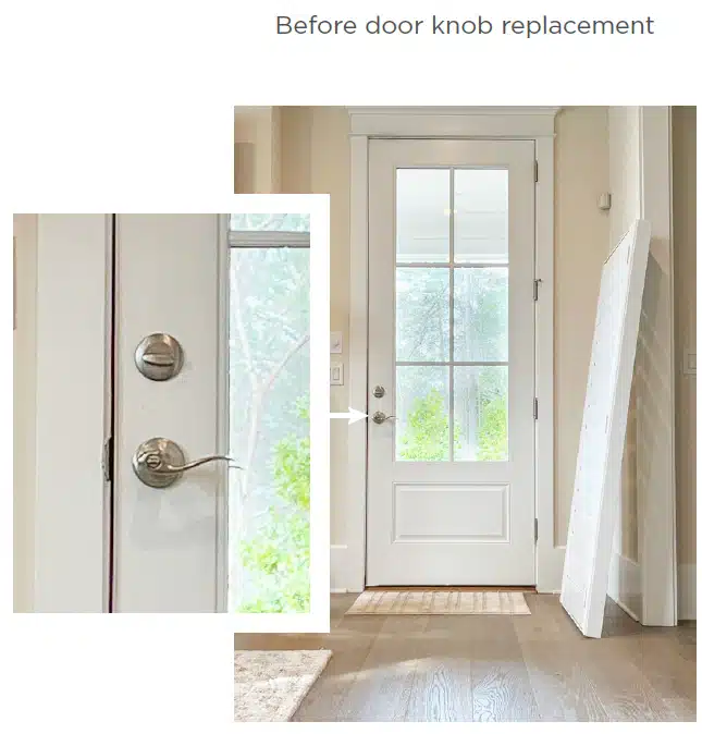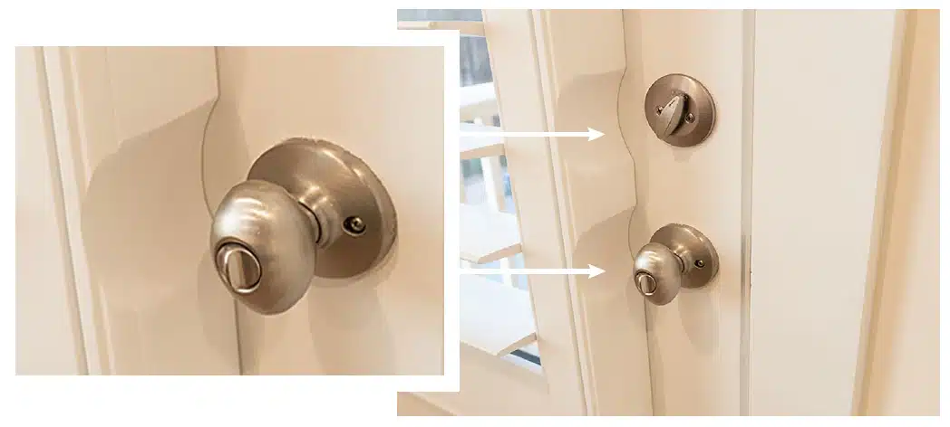 In many cases, there is enough space between the window within the door and knob so that the shutters can be installed to cover the window and the homeowner still has enough space to turn the door knob or lever. In such cases, a standard plantation shutter can be installed in the same way as they are on any other window in a home.